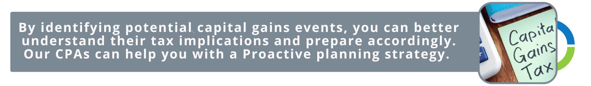 Proactive planning is essential for minimizing capital gains tax liability in a compliant manner. By identifying potential capital gains events, you can better understand their tax implications and prepare accordingly. Consulting with a CPA can significantly enhance your strategy.