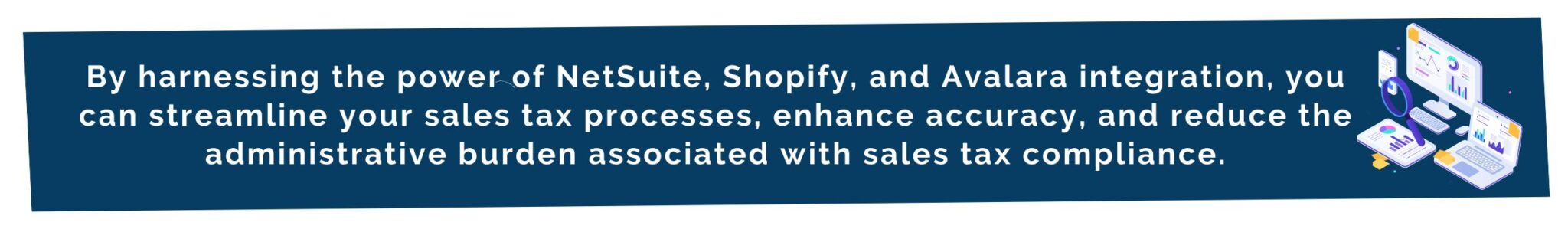 As a business owner, navigating the complexities of sales tax compliance can be a daunting task. From calculating tax rates to managing exemptions and filing returns, the process requires time, attention to detail, and a comprehensive understanding of ever-changing tax regulations. But with the integration of your operational software like NetSuite, Shopify, and Avalara; you can streamline sales tax processes within your business to ensure compliance.